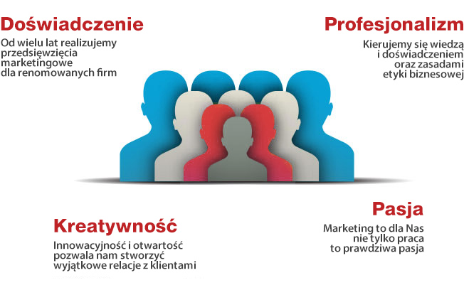to zespół wykwalifikowanych ekspertów, dla których marketing to nie tylko praca lecz prawdziwa pasja. Wykształcenie i wieloletnie doświadczenie zdobywane podczas wdrażanych strategii i realizowanych przedsięwzięć marketingowych min. dla marek RESERVED, CROPP, HOUSE czy MOHITO gwarantują usługi najwyższej jakości.
